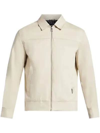 light beige cotton lightweight front zip fastening spread collar long sleeves two side welt pockets mini logo tag buttoned cuffs straight hem