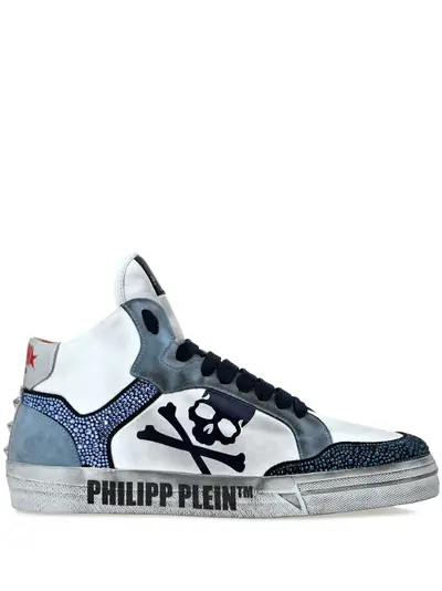 blue/white nappa leather skull print logo at the sole front lace-up fastening rubber sole