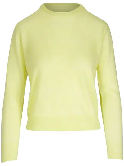 citron yellow linen-cashmere-silk blend stretch-design ribbed knit crew neck long sleeves straight hem