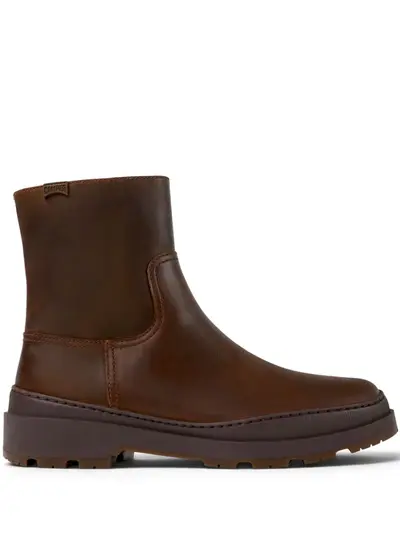 brown leather appliqué logo side zip fastening round toe rubber sole