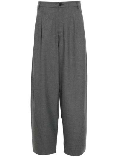 medium grey lurex detailing concealed zip-fly and button fastening belt loops two side slash pockets front pleat detailing drop crotch rear welt pocket tailored design full-length wide leg