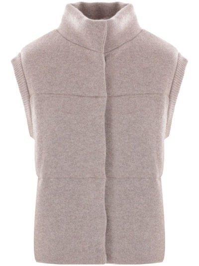light brown cashmere blend knitted construction concealed front button fastening high neck sleeveless straight hem