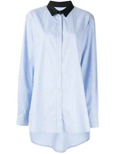 Blue and white stripe cotton Truth striped shirt from MacGraw featuring a contrasting collar, a front button fastening, long sleeves, button cuffs, a curved hem and an oversized fit.
