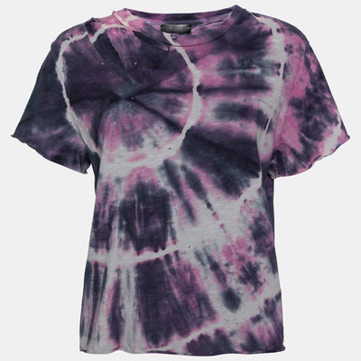 Amiri Purple Tie Dye Printed Cotton Distressed Crew Neck Top L 631267 (фиолетовый, lpn26857707)