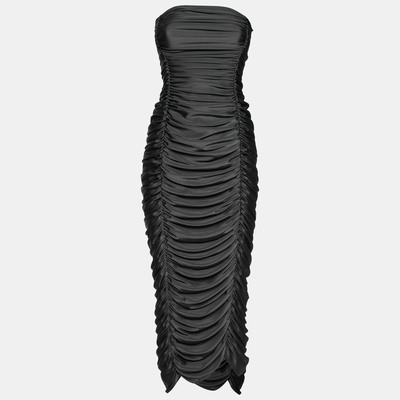 This simple and elegant black dress from Norma Kamali is perfect for those special occasions. It is stitched from fine materials and features a strapless design with gorgeous ruched detailing. Wear it with high heels and a statement clutch to achieve a fashionable look.
