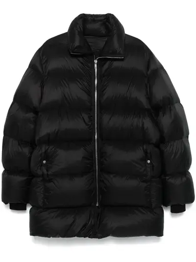 black recycled polyamide quilted padded design front zip fastening funnel neck long sleeves ribbed cuffs two side stud-fastening pockets internal zip-fastening pockets full lining straight hem mid-length