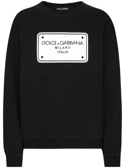 black jersey texture stamp-effect graphic print ribbed cuffs and hem crew neck