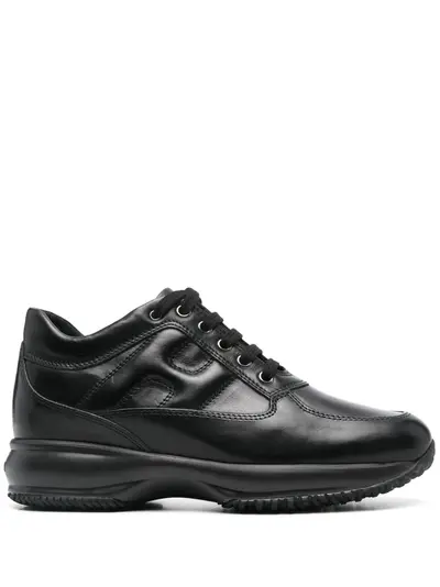 black calf leather smooth grain front lace-up fastening embossed logo to the side logo patch at the tongue almond toe ridged rubber sole This piece comes complete with a protective dust bag.