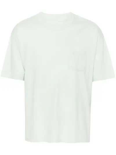 pastel green cotton lightweight jersey crew neck short sleeves chest patch pocket straight hem