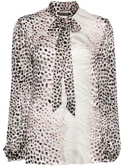 neutrals/multicolour all-over graphic print devoré effect neck strap long puff sleeves button fastening buttoned cuffs straight hem