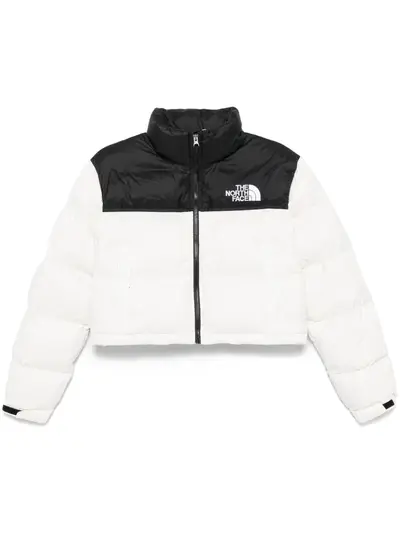 white/black down-feather filling ripstop texture padded design quilted front zip fastening stand-up collar long sleeves touch-strap cuffs embroidered logo at the chest two side zip-fastening pockets full lining cropped drawstring hem with toggle fastening