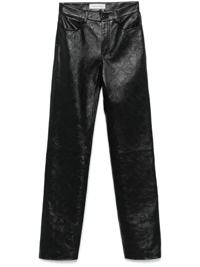 black lambskin all-over embossed moonogram straight leg concealed zip fly and button fastening belt loops two rounded pockets to the sides logo patch to the rear two rear patch pockets full-length