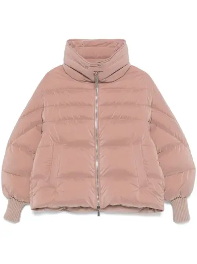 salmon pink shell down-feather filling quilted padded design front two-way zip fastening front press-stud fastening funnel neck long sleeves ribbed cuffs two press-stud fastening side pockets quilted lining straight hem