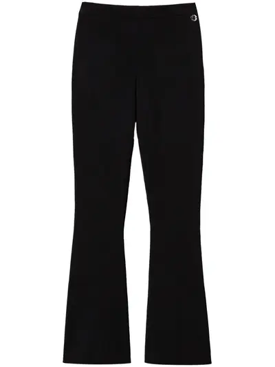black fine knit flared high-waisted elasticated waistband logo plaque ankle-length