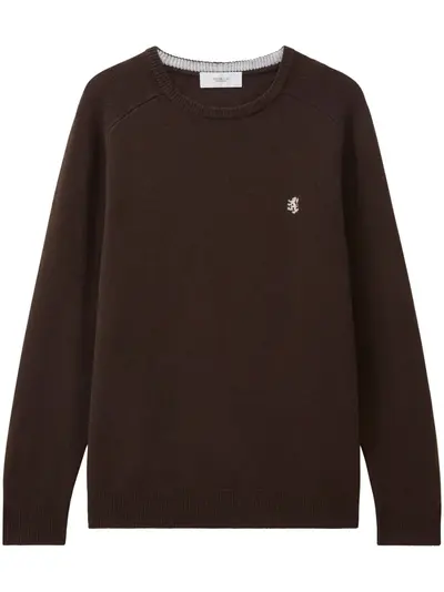 brown lambs wool crew neck embroidered logo at the chest long sleeves ribbed cuffs and hem
