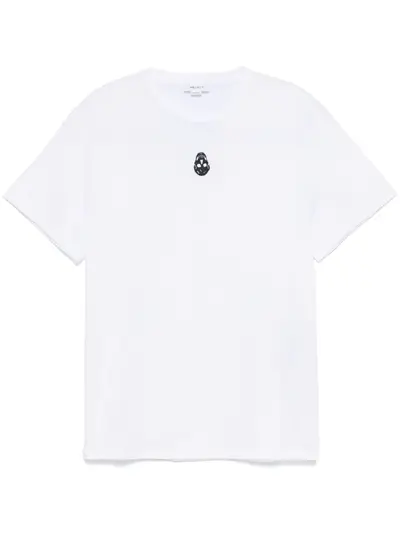white/black cotton lightweight jersey crew neck short sleeves skull embroidery to the front straight hem