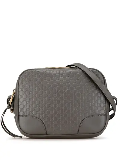 This crossbody bag features embossed leather body adjustable flat leather shoulder strap top zip closure interior slip pockets. Gray. Serial Number: 449413 568024. Condition: GOOD. This previously owned and used item is in good condition with minimal signs of use. This may include fading of material or plating and scratches.