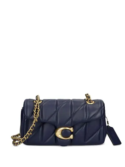 navy blue nappa leather smooth grain quilted foldover top with magnetic fastening adjustable leather and chain-link shoulder strap C logo plaque rear magnetic-fastening pocket partitioned compartment full lining internal logo patch internal flap pocket internal slip pocket