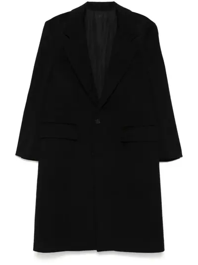 black cashmere front button fastening notched lapels long sleeves buttoned cuffs chest welt pocket dart detailing two front flap pockets central rear vent full lining internal pocket straight hem
