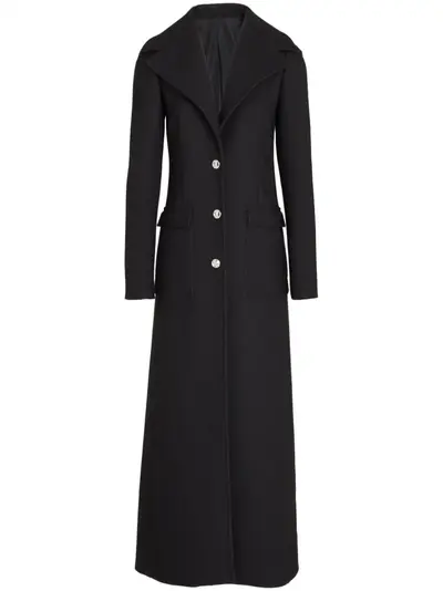 black gabardine weave front button fastening plunging V-neck long sleeves two side flap pockets rear slit