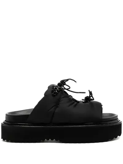 black padded panels crystal embellishment front lace-up fastening toggle fastening bow detailing round open toe branded insole leather lining platform sole rubber sole