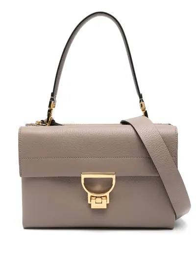taupe calf leather pebbled texture twist-lock fastening top zip fastening single detachable top handle adjustable detachable shoulder strap foldover top logo-engraved gold-tone hardware gold-tone logo lettering partitioned compartment internal logo tag This piece comes complete with a protective dust bag.