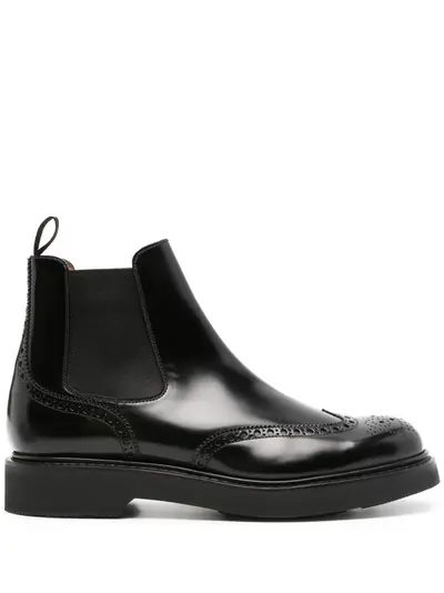 black calf leather brushed effect pull-on style pull-tab at the heel elasticated side panels ankle-length punch-hole detailing perforated embellishment round toe branded insole contrast lining rubber sole