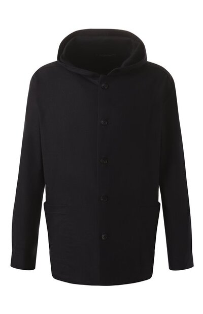 Рубашка с капюшоном и накладными карманами станет комфортной альтернативой легкой куртке в прохладную сухую погоду. Для изготовления модели использовали эластичную шерстяную ткань, усиленную нейлоном.