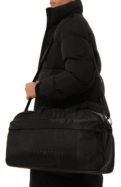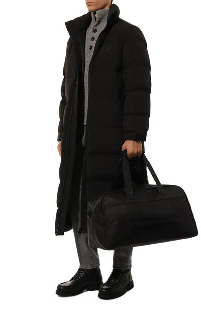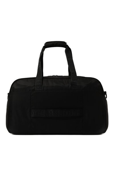 Текстильная дорожная сумка Arlo дополнена внешним карманом на молнии. Еще один плоский спрятан внутри. Короткие ручки можно скрепить между собой накладкой с застежкой велкро. А съемный плечевой ремень — отрегулировать по длине.