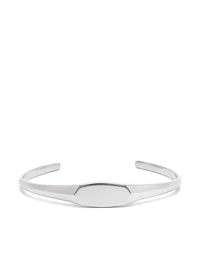 silver-tone sterling silver polished finish open cuff design pull-on style Hallmarked in the United Kingdom at the London Assay Office.