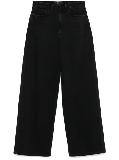 black cotton denim concealed fly and button fastening belt loops classic five pockets wide leg