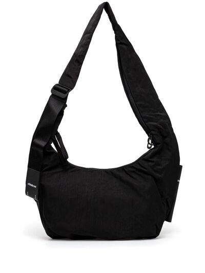 black interlock twill weave water-repellent crinkled finish top zip fastening adjustable shoulder strap logo patch to the front logo tag to the side main compartment internal zip-fastening pockets full lining