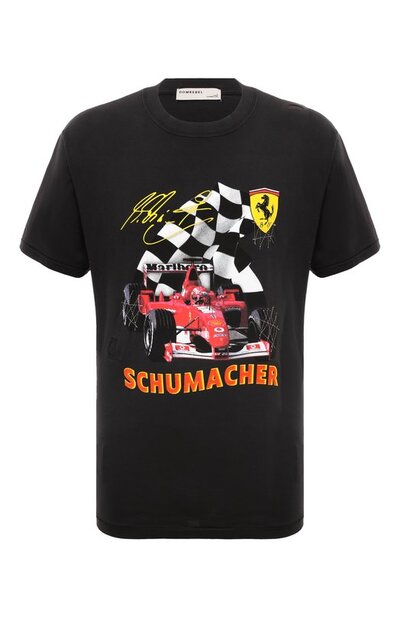 Футболку делает яркой принт, вдохновленный Формула-1: за рулем красного Ferrari F2001B Михаэль Шумахер одержал свою 54-ю победу в гонках. Модель из хлопкового трикотажа наши стилисты предлагают носить с джинсами и кедами.