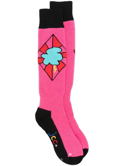 pink/multicolour ribbed knit slip-on style patterned jacquard jacquard logo motif elasticated ankles calf-length Be sure before opening, as socks and hosiery can only be returned in their original, unopened packaging.