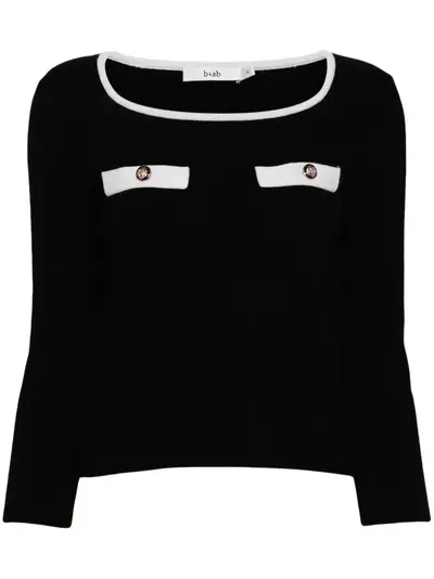black/white round neck ribbed knit contrasting trim button fastening cropped