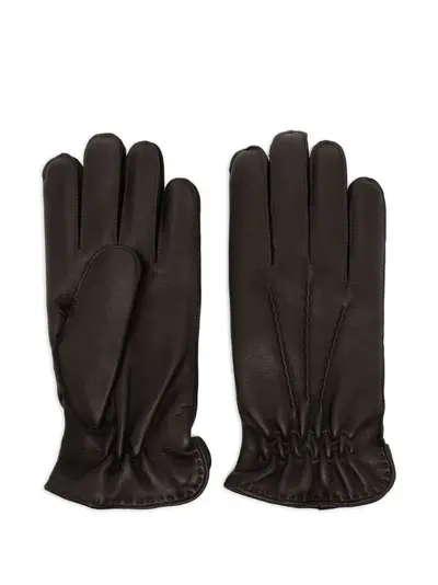earth brown nappa leather pintuck detailing full-finger design elasticated panelling ribbed lining