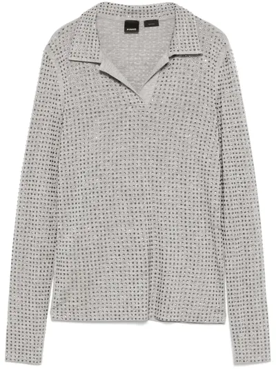 heather grey stretch-jersey mélange effect rhinestone embellishment polo collar V-neck long sleeves unlined straight hem
