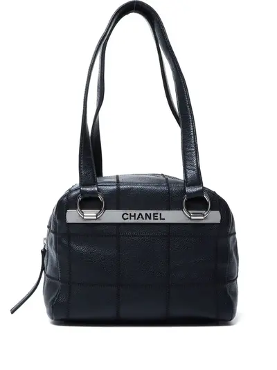 circa 2004-2005 black caviar leather signature Choco Bar quilting logo plaque two long top handles top zip fastening main compartment logo-jacquard lining silver-tone hardware Serial Number: 9334064 This item comes with an original Chanel authenticity card. Condition: GOOD. This previously owned and used item is in good condition with minimal signs of use. This may include fading of material or plating and scratches.