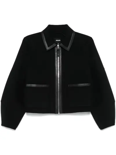 black Rws wool leather trim front zip fastening spread collar balloon sleeves front patch pocket unlined straight hem
