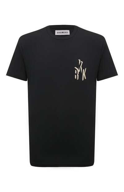 Для пошива футболки с круглым вырезом использовали гладкое хлопковое джерси с добавлением стрейчевых нитей. Модель прямого кроя украшена спереди и сзади логотипами бренда.