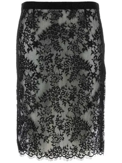black cotton blend floral-lace detailing side button fastening wraparound style sheer