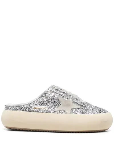 silver-tone glitter detailing slip-on style front lace-up fastening logo print to the side signature star patch to the sides logo-print tongue round toe branded insole shearling lining rubber sole This piece comes complete with a protective dust bag.
