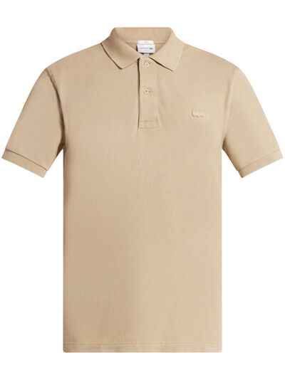 sand beige cotton piqué weave front button placket polo collar appliqué logo short sleeves
