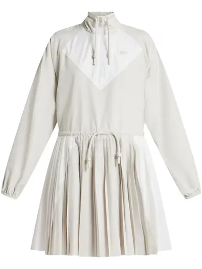 grey panelled design half front zip fastening logo patch at the chest mock neck drawstring fastening fully pleated long sleeves elasticated cuffs flared hem
