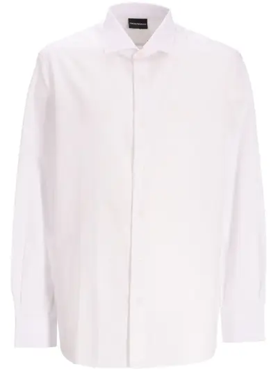 white cotton long sleeves front button fastening classic collar buttoned cuffs curved hem