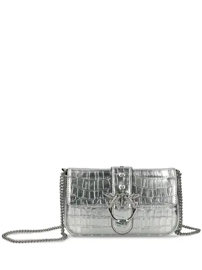 silver-tone leather embossed crocodile effect foldover top with clasp fastening chain-link shoulder strap stud detail signature Love Birds buckle embossed logo to the rear silver-tone hardware partitioned compartment