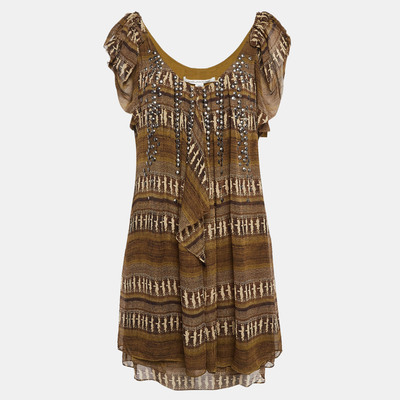 Diane Von Furstenberg Brown Printed Silk Neck Detail Mini Dress L 1039107 - 1 small