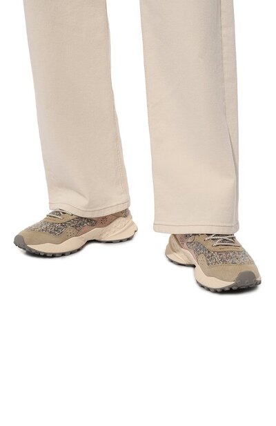 Кроссовки Kotetsu из фактурного твида дополнили перфорированными накладками из замши. Модель, утепленную овчиной, поставили на широкую подошву Vibram с рельефным протектором.