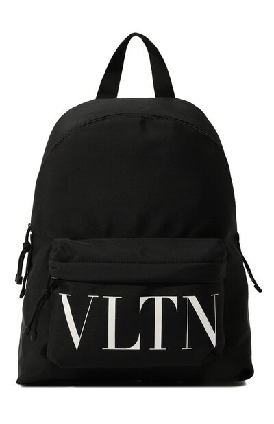 Рюкзак VLTN из нейлона дополнили отделением для ноутбука и объемным внешним карманом на молнии, украшенным контрастной аббревиатурой. Декор поддержали жаккардовым паттерном на короткой ручке и регулируемых лямках.