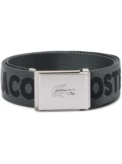 medium grey piqué weave jacquard logo motif latch-buckle fastening engraved logo flat tip adjustable fit